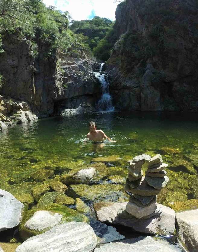 Actividad combinada de mountain bike y trekking, dentro de una Reserva Natural Provincial, donde realizaremos una primera etapa en bicicleta bordeando a través de 8 km un hermoso Dique, hasta llegar a un arroyo, donde comenzamos la caminata de 1 hora y media, hasta llegar a la cascada de los Hornillos. Con un salto de 6 mts de altura, y más de 10 mts de profundidad, ésta cascada es la más grande la región, siendo sus cristalinas aguas, una invitación irresistible a disfrutar de un refrescante baño. Ideal durante los meses cálidos del verano.